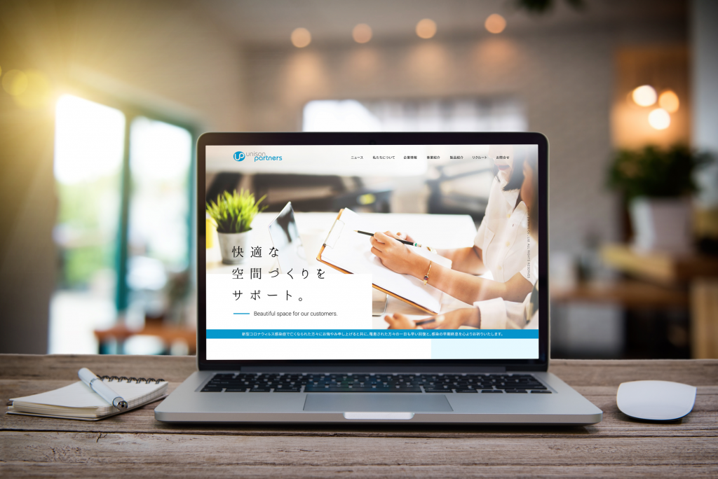 リニューアルしたホームページでは、企業情報や企業理念、店舗サポート事業、ウイルス感染予防対策など